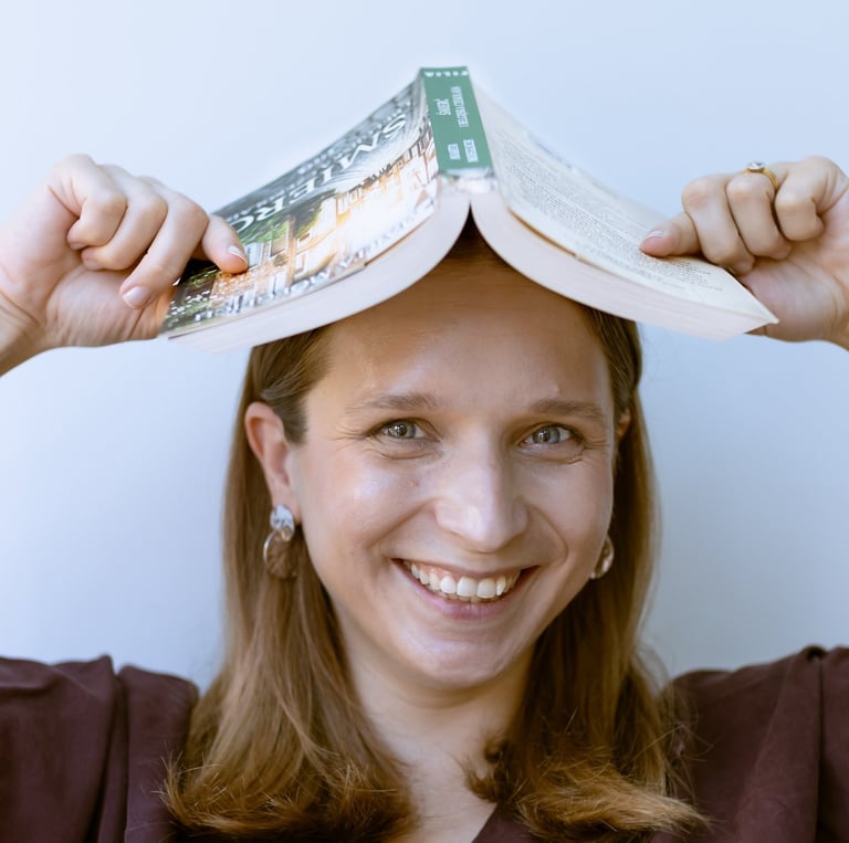 Po radosnym życiu w stolicy, nie lubiąc nudy i szukając zmian, przeniosłam się do kraju czekolady i gofrów. Klimat małego belgijskiego miasta i obserwacja jego mieszkańców (a może spora ilość zjedzonych czekoladek) sprawił, że powołałam do życia bohaterki "Śmierci i belgijskiej czekolady." (Filia, 2025)